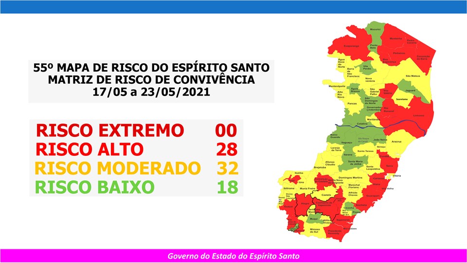 Governo do Espírito Santo divulga 55º Mapa de Risco Covid-19
