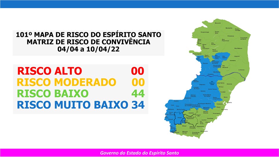 Governo do Espírito Santo divulga 101º Mapa de Risco Covid-19